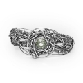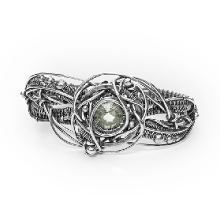 A striking intricately woven one of a kind bracelet. The focal stone is hand-faceted green amethyst which has a soft pale green hue.