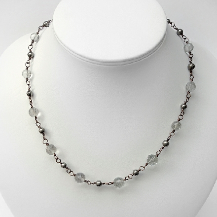 Gentle green graduated and hand faceted amethyst round beads are interspersed with smooth round pyrite beads in this subtle handmade chain necklace.