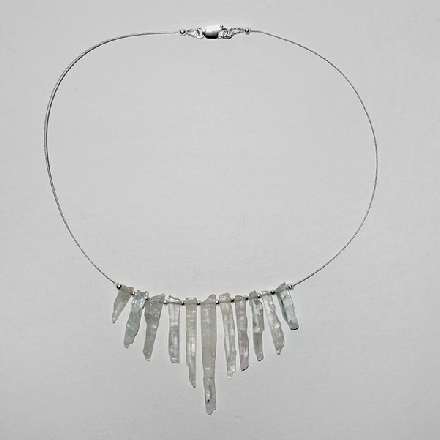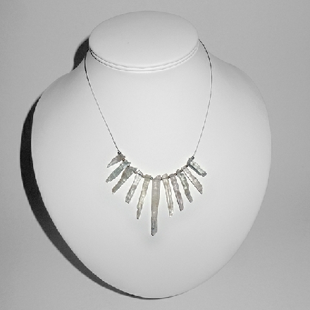 Very subtle shades of pinks, blues and greens are present in these kunzite shards.  They are spaced with small sterling silver round beads on beading wire to give a contemporary look.