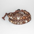 Earthy picture jasper round beads are woven onto natural leather cord in this casual 2 wrap bracelet.