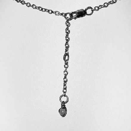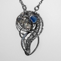 A beautiful curvaceous pendant handcrafted in lightly oxidised sterling silver with shimmering blue kyanite and labradorite.  The chain is also decorated with labradorite.