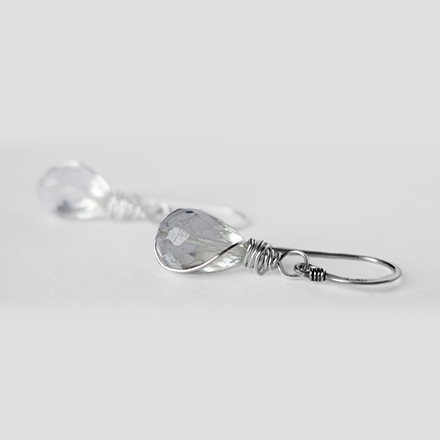 Light and delicate earrings with pale green faceted amethyst drops wire wrapped with silver plated wire.