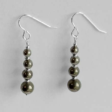 Metallic pyrite round beads separated with sterling silver rondelles.