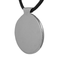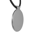 It is hung on a black leather 18” cord with sterling silver hook clasp.