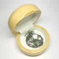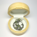 Peridot and green amethyst stones caught in a web of oxidised sterling silver form this unique round pendant on 18" leather cord. Pendant size 45 x 40mm.