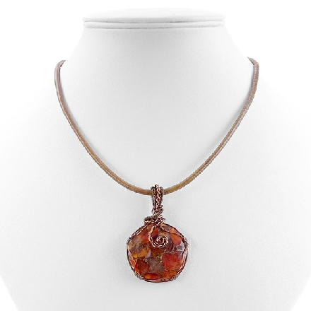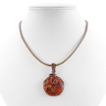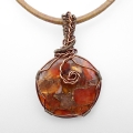 Nuggets of genuine carnelian are bound in a bronze matrix in this stunning hand cut and polished round cabochon.  Bronze coloured wire is securely wrapped and sculpted to form this 33 x 52 mm pendant.