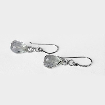 Light and delicate earrings with pale green faceted amethyst drops wire wrapped with silver plated wire.
