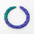 A striking, brightly coloured silk bangle from the Aurora Silk Collection.  Layers of recycled sari silk are bound with silver plated wire to create this chunky, eye-catching design.