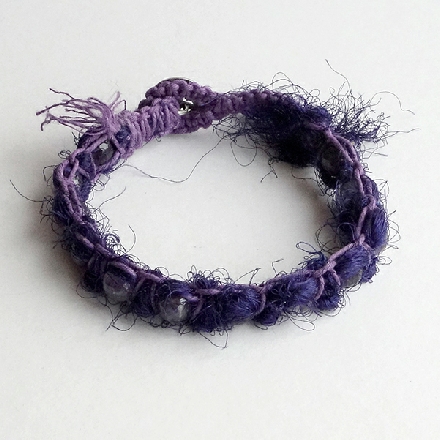 Purple toned sage amethyst faceted beads are knotted together with silk and hemp cord creating a lovely casual bracelet.